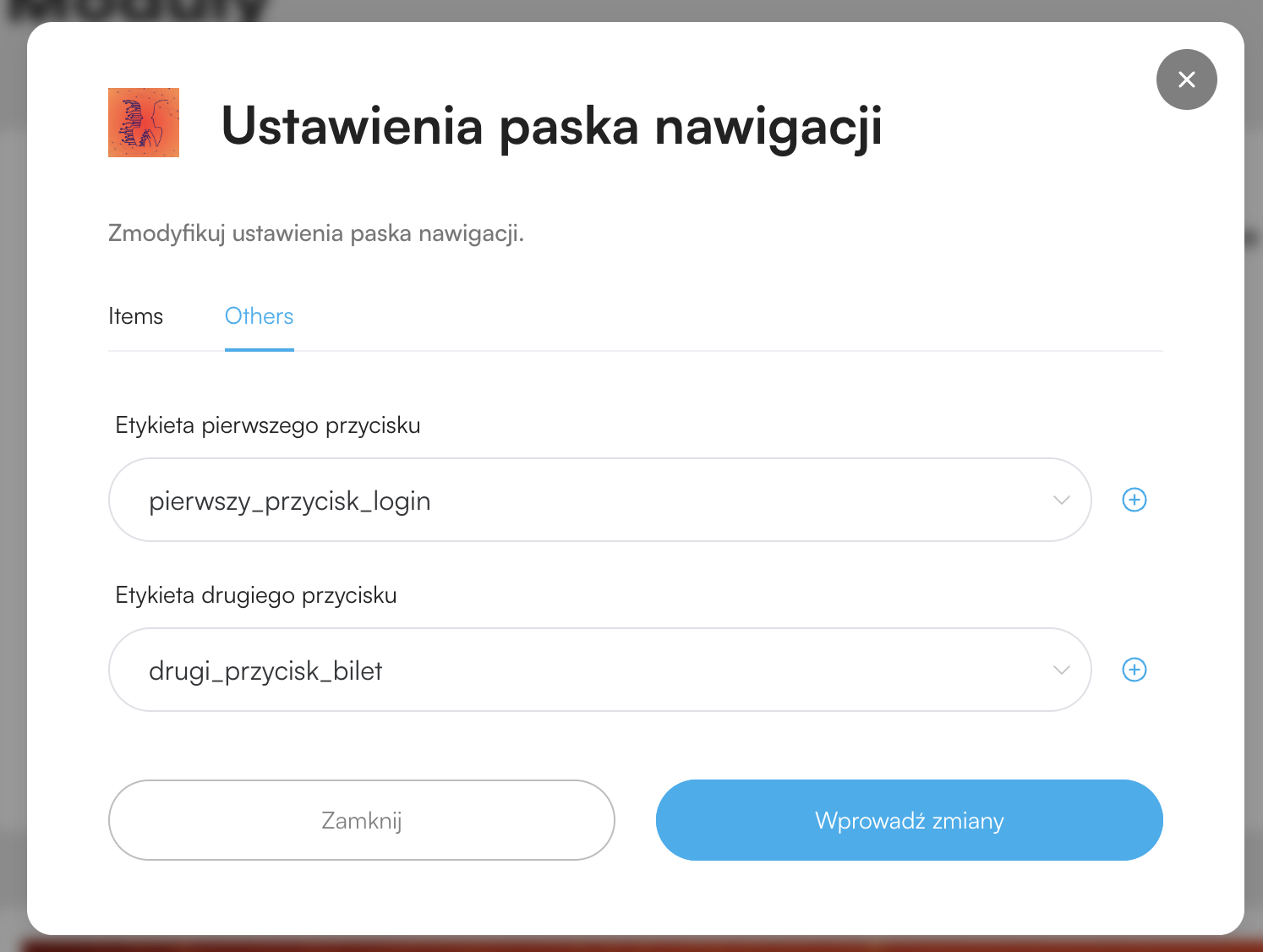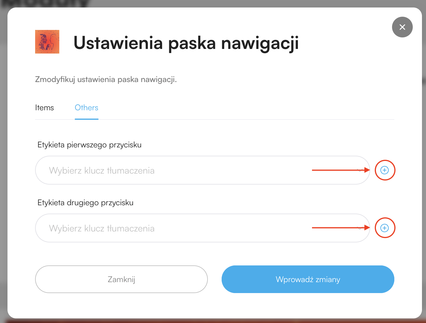 To change the names of the system buttons, go to the navigation bar configurator and then go to the “others” tab. Add texts to the translation library that will replace the system names of the functional buttons.