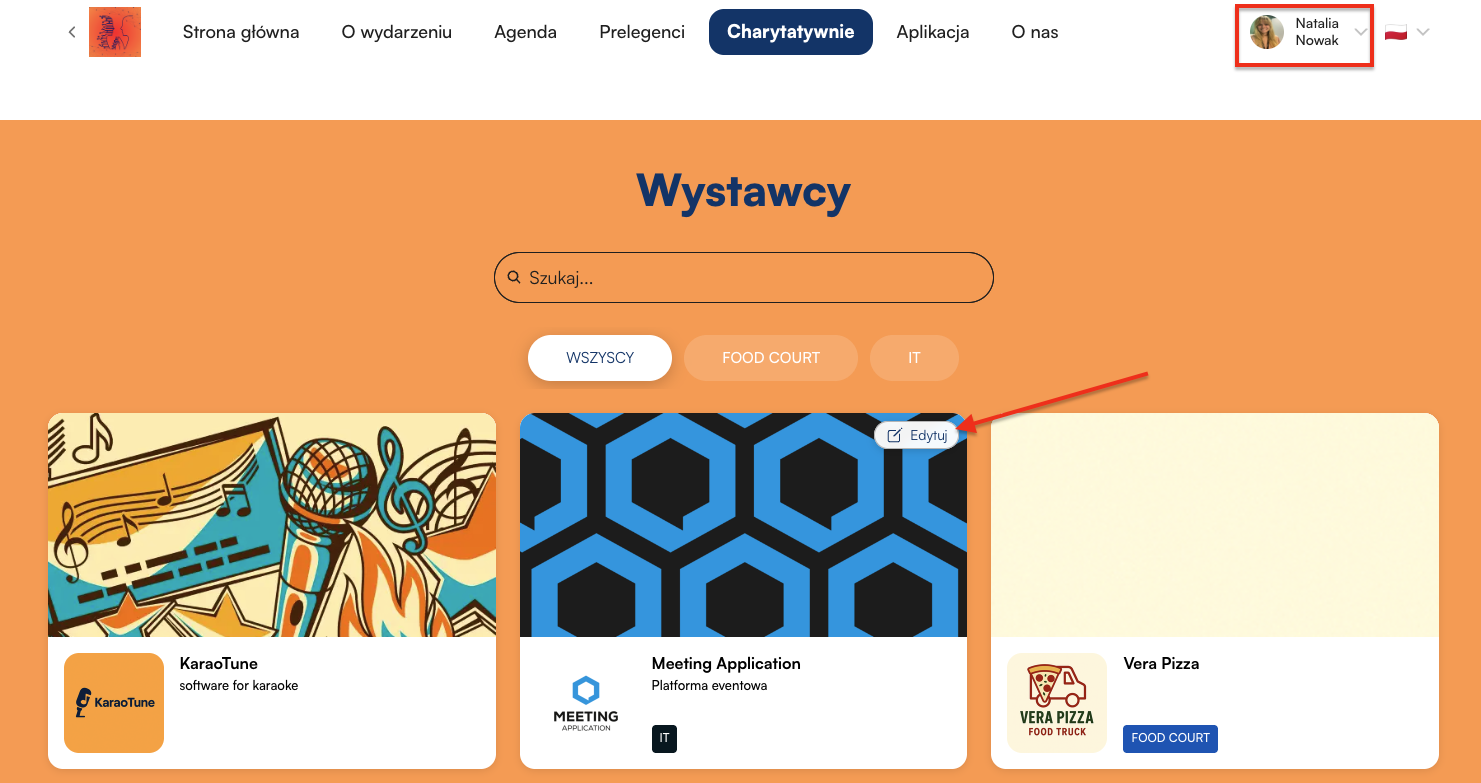 Funkcja moderatora wystawcy pozwala organizatorowi odciążyć się z pracy nad profilami firm i uprościć komunikację. Wystawcy samodzielnie dbają o treść wizytówki, a administrator ma tylko jedno zadanie – zatwierdzić zmiany.