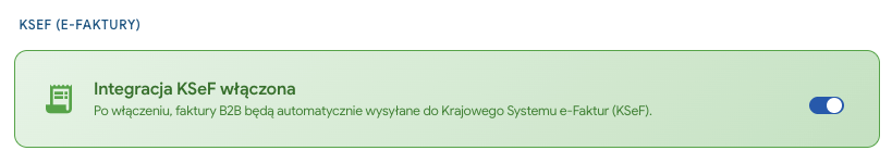 Przełącz switch Integracja KSeF włączona.