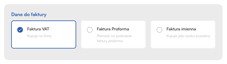 Kupujący podaje swoje dane i deklaruje typ zakupu: